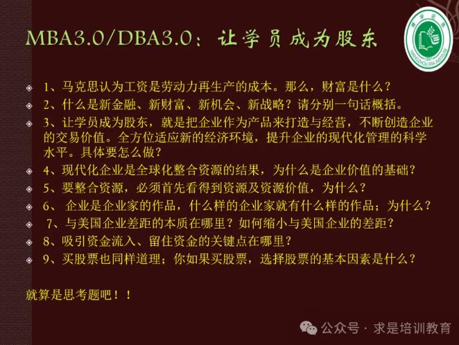 何校長回顧了前五次沙龍的具體背景及基本情況,從經(jīng)濟信號、經(jīng)濟周期、經(jīng)濟政策到經(jīng)濟機會等方面進行了深入探討。其中包括如何吸引資金和留住資金,選擇投資機會以及股票、房產(chǎn)等其它投資方式,規(guī)避風(fēng)險的方法,以及在5000多家上市公司中如何篩選出具有投資價值的機會。何校長從資金的本性與靈性、價值規(guī)律,求是科學(xué)院MBA3.0/DBA3.0的基本定理,新質(zhì)生產(chǎn)力、知本價值、讓學(xué)員成為股東等方面進行了系統(tǒng)、全面的闡述。同時,何校長還通過數(shù)據(jù)對比了中美兩國企業(yè)之間的差距等。何校長的講話言簡意賅,觀念、概念、邏輯非常清晰、明確,信息量非常大。在與會者的要求及掌聲中,超出了原來預(yù)定的時間?,F(xiàn)將校長的講話提綱PPT附上,供參考。大家可以認(rèn)真思考與進一步研究與消化。機會與威脅是雙胞胎,具體情況具體分析,科學(xué)的研究方法非常重要。